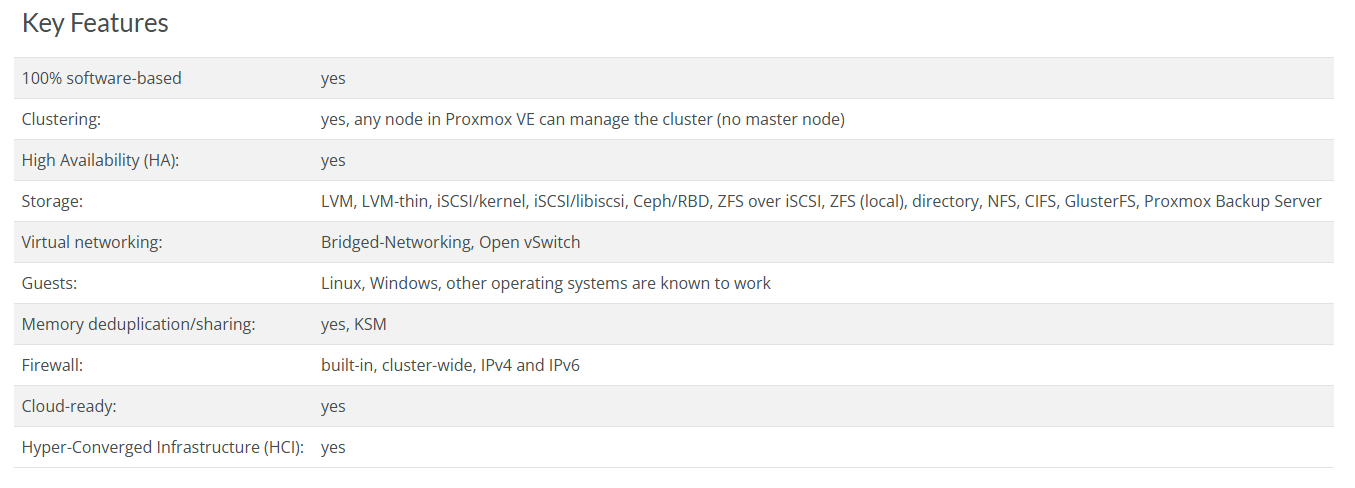 Proxmox VE is already the best choice for thousands of satisfied customers when it comes to choosing an alternative to VMware vSphere, Microsoft Hyper-V or Citrix XenServer. The following list will help you to compare Proxmox VE with alternatives in the server virtualization market: